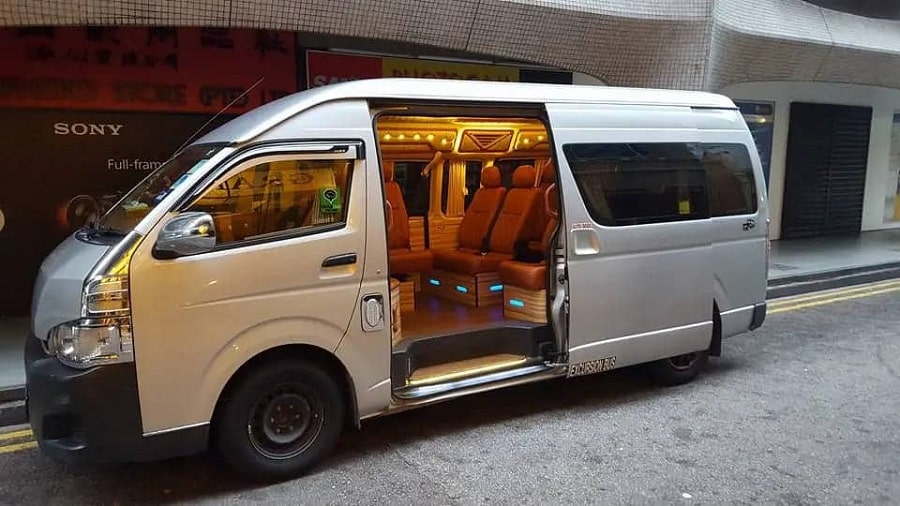 - Toyota Hi-Ace 9/13-seater – ideal for larger groups, with a high roof and ample luggage capacity.